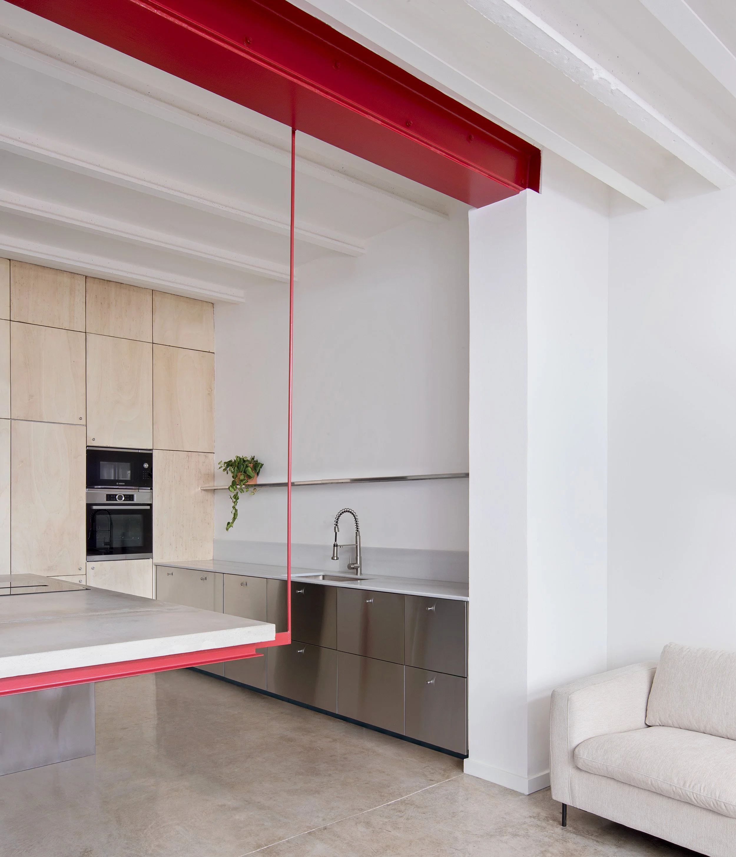 The house aims to frame and close off a piece of air at this area in Barcelona and emphasizes its main construction elements. A heavy plinth is built, in relation to the garden and the earth, on which rests a light metal framework structure open to the landscape and the Sun.