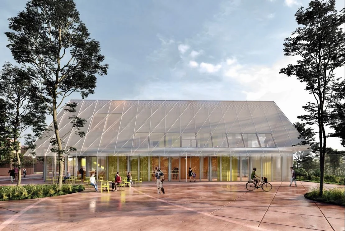 1st Prize international architectural competition. The project is informed by old rural architecture by wrapping a complex sport program under one single pitched roof at this point of the city of Žatec. The building tries to bring domestic atmospheres in architecture to a large scale project by defining small and medium interstitial spaces between the outdoor park and the main training indoor area.
